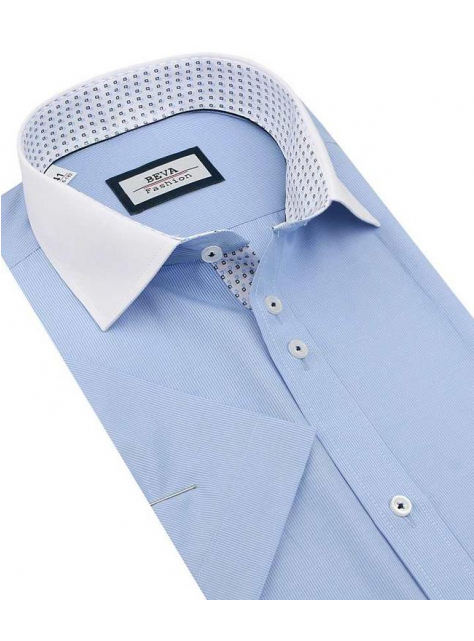 Modrá košeľa BEVA s bielym golierom 137/6/KR/2T105