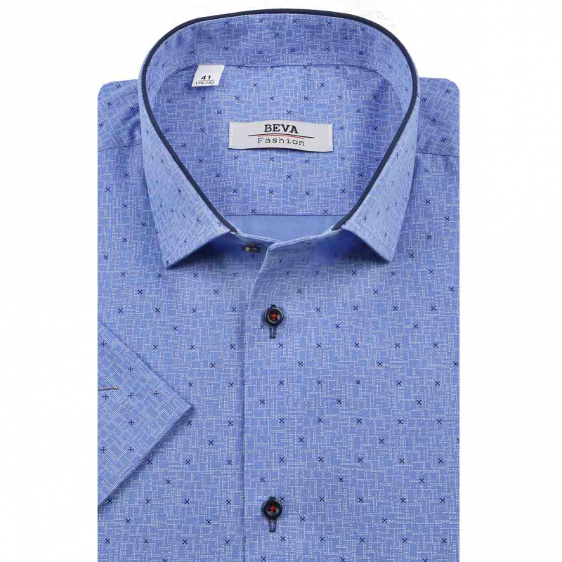 Modrá košeľa krátky rukáv BEVA slim T2286