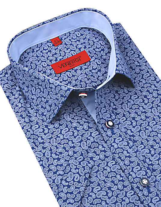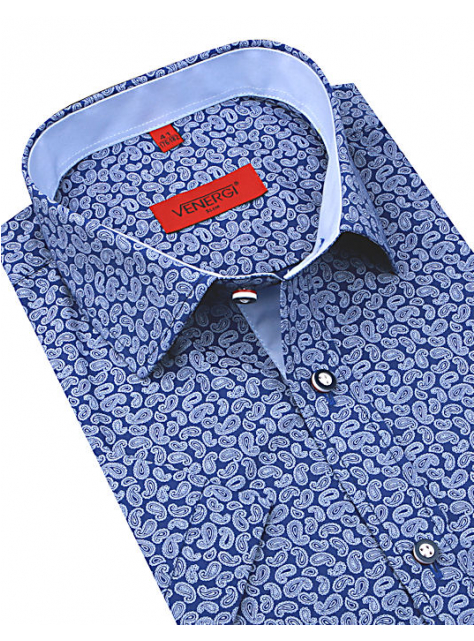 Modrá košeľa s potlačou kr.rukáv VENERGI SLIM KR254