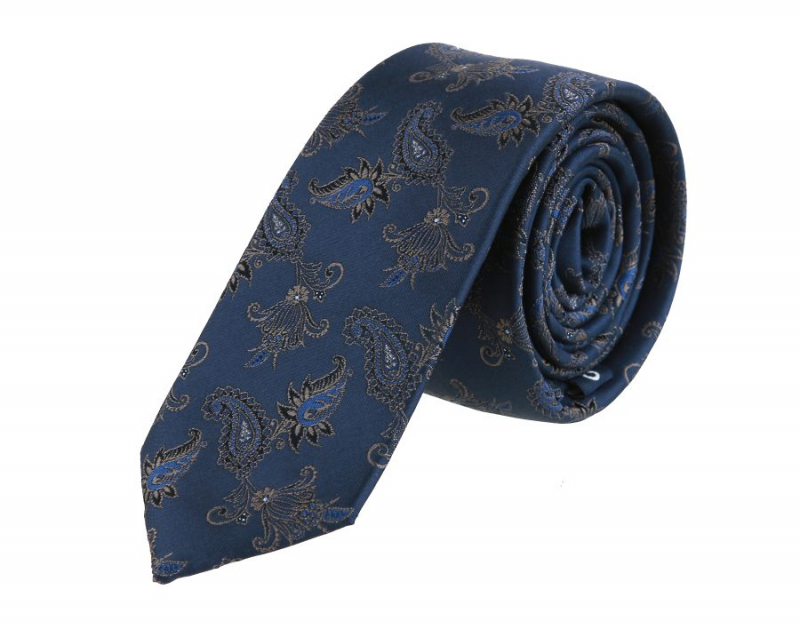 Modrá luxusná kravata s kašmírovým vzorom VENTI