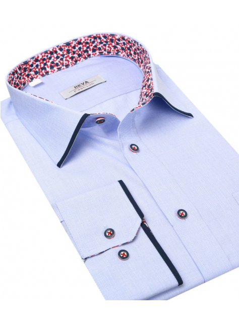 Ležérna pánska košeľa na každý deň BEVA FASHION v modrej farbe. Košeľa v nadmernej veľkosti s dlhým rukávom v klasickom voľnom strihu vyhovuje výške postavy 182 - 188 cm.