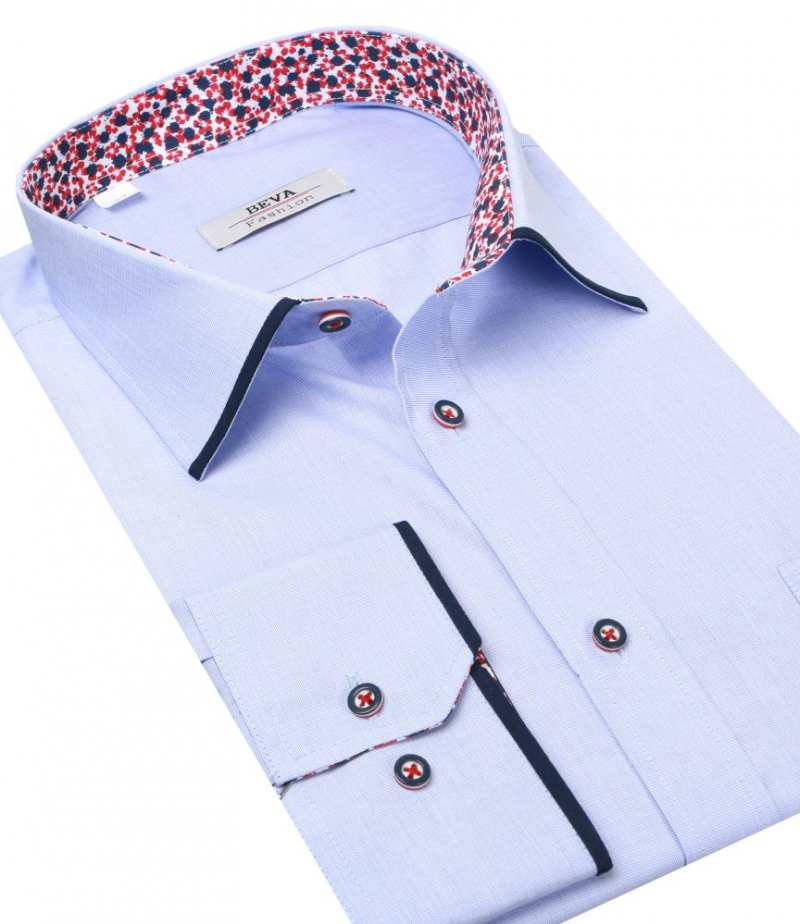 Modrá pánska košeľa BEVA KLASIK s dlhým rukávom 3XL-5XL