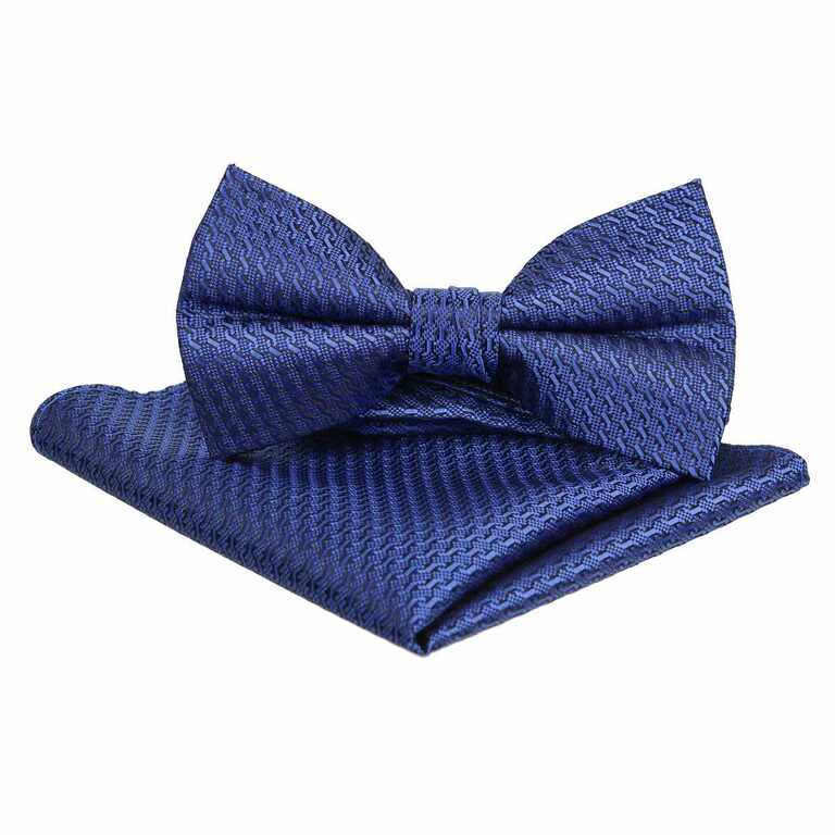 Elegantný pánsky set - motýlik a ozdobná vreckovka do saka ORSI s tkaným vzorom - farba tmavomodrá s odlekom parížskej modrej.
