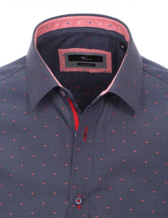 Luxusná modro-šedá košeľa zn. VENTI vo vypasovanom strihu. Kvalitný materiál (100% bavlna bez žehlenia) s moderným drobným vzorom, precízne vypracovanie, dôraz na detaily, moderný dizajn.