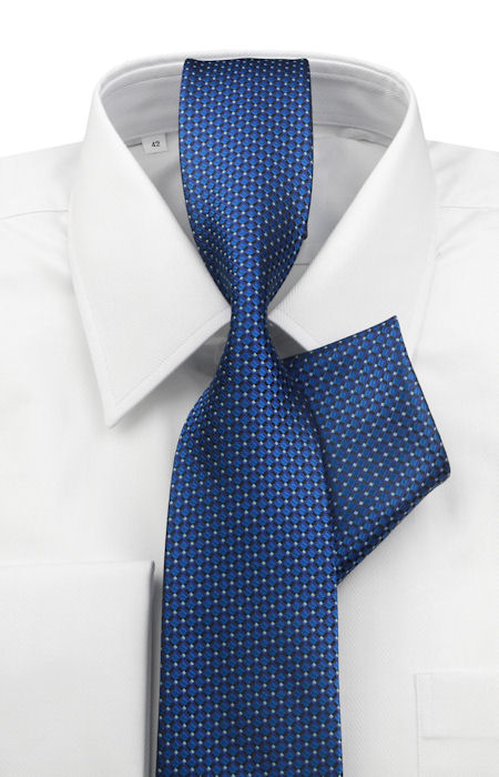 Kravata zoštíhleného strihu, šírka 7,5 cm, vnútorná bavlnená vložka pre pekný vzhľad kravaty a kvalitný kravatový uzol, podšívka - polyester.