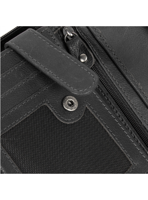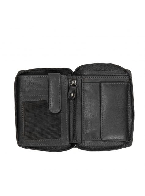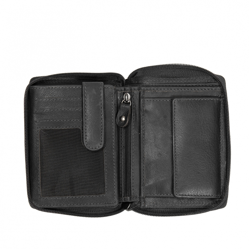 Vnútorná časť peňaženky je zopnutá prackou, má veľké okienkové priečinky vyhujúce aj dokladom staršieho formátu. Obojstranný priečinok na zips je priestor pre ďalšie karty a doklady.