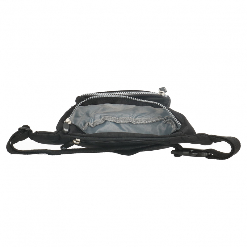 Ľadvinka/cestovná taštička na pás z odolného nylonu s nastaviteľným popruhom do obvodu pása 85-125 cm. Malý formát s priestrannou a obsahu prispôsobiteľnou hlavnou komorou. Použitý materiál je pevný crincle nylon - veľmi ľahký, vodeodolný s vyššou odolnosťou záťaži a s ľahkou údržbou. Vnútro s elegantnou lesklou nylonovou podšívkou. Dlhý popruh s plastovou sponou umožňuje nosenie okolo pása, alebo v modernom crossbody štýle.