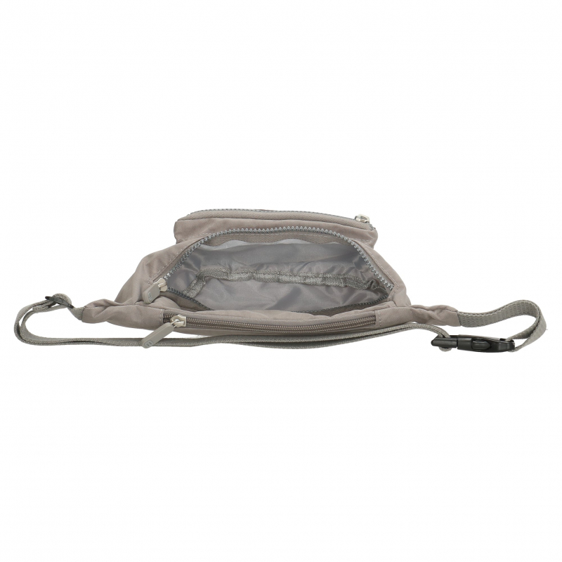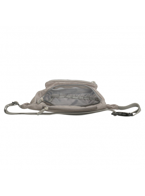 Ľadvinka/cestovná taštička na pás z odolného nylonu s nastaviteľným popruhom do obvodu pása 85-125 cm. Malý formát s priestrannou a obsahu prispôsobiteľnou hlavnou komorou. Použitý materiál je pevný crincle nylon - veľmi ľahký, vodeodolný s vyššou odolnosťou záťaži a s ľahkou údržbou. Vnútro s elegantnou lesklou nylonovou podšívkou. Dlhý popruh s plastovou sponou umožňuje nosenie okolo pása, alebo v modernom crossbody štýle.