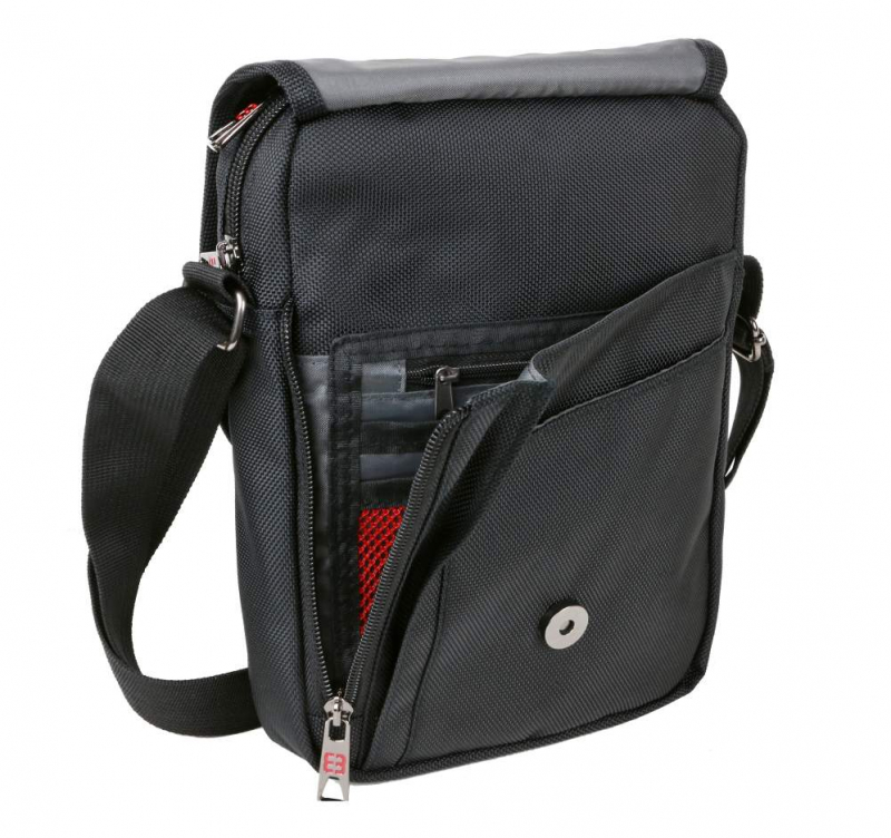 Príručná taška na na rameno zn. ENRICO BENETTI 17,5 x 24 x5 cm pre dokumenty A5 a tablet - jednokomorová, s vystužením zadnej steny a priečinku na tablet, priečinok pod poklopom s organizérom. Taška s prispôsobiteľným obsahom na každodenné príručné veci, príručné drobnosti a doklady. Nastaviteľný popruh na rameno do 150 cm (š 3 cm) pevne uchytený. Hlavná komora a priečinky s uzatváraním na zips.