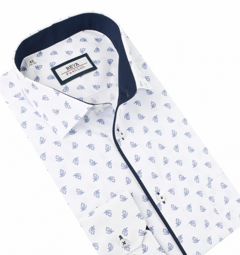 Elegantná pánska vzorovaná košeľa s dlhým rukávom BEVA Regular (klasický strih). Trendová košeľa na výšku postavy 176 - 182 cm.