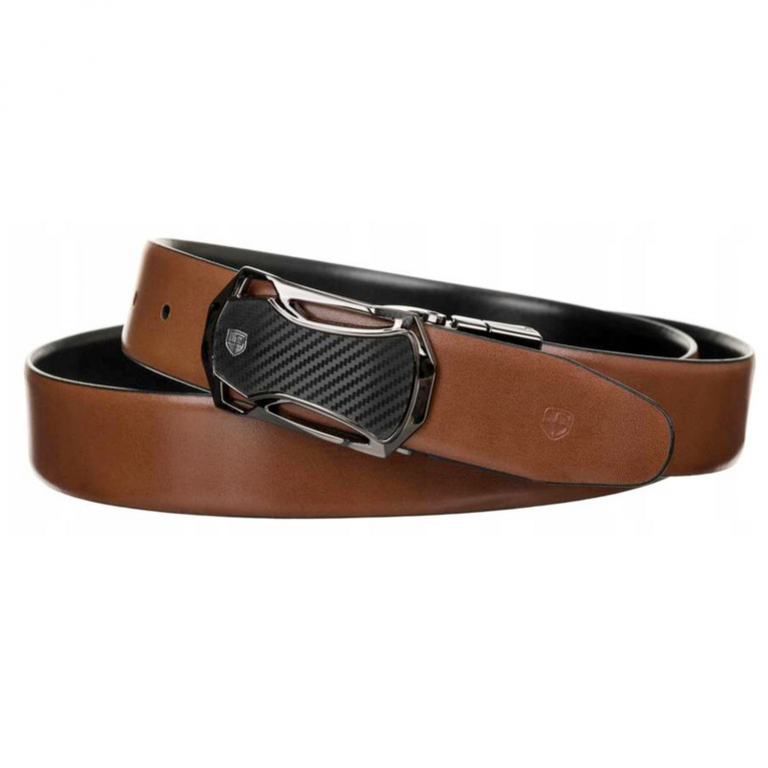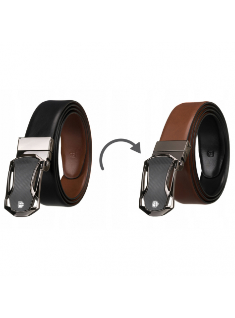 Štýlový pánsky opasok pre ležérny aj elegantný štýl do obleku. Obojstranný opasok - čierna alebo koňakovo-hnedá koža.
