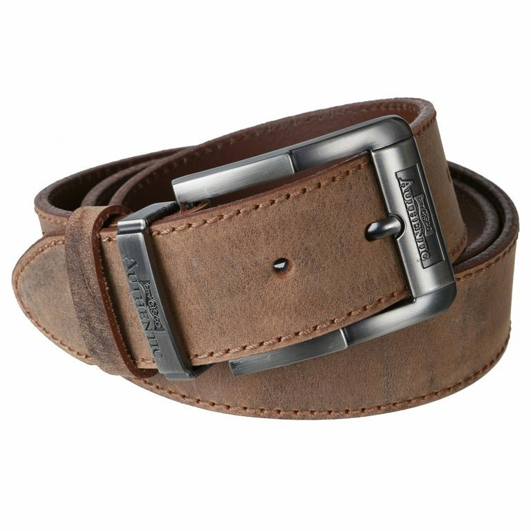 Kožený opasok zn. MERCUCIO - hnedý remeň z masívnej poddajnej kože v brúsenej rustikálnej úprave, okrajové prešívanie. Skracovateľný na požadovanú dĺžku. Atraktívna masívnejšia pracka na strmeň, prevedenie šedostrieborné satinované s gravírovaním. Vhodný do džínsov aj nohavíc.