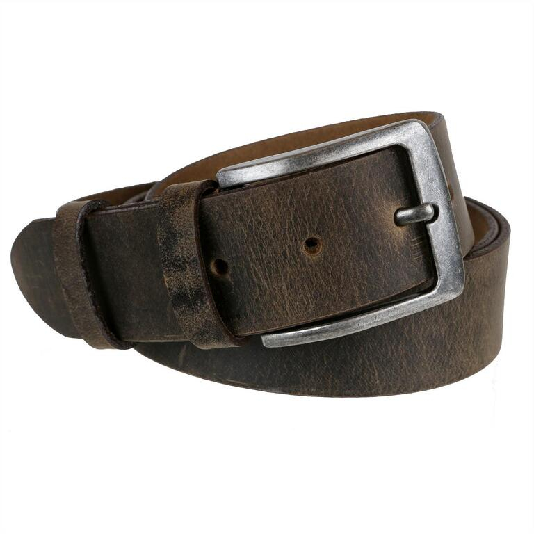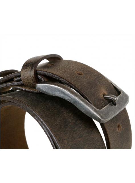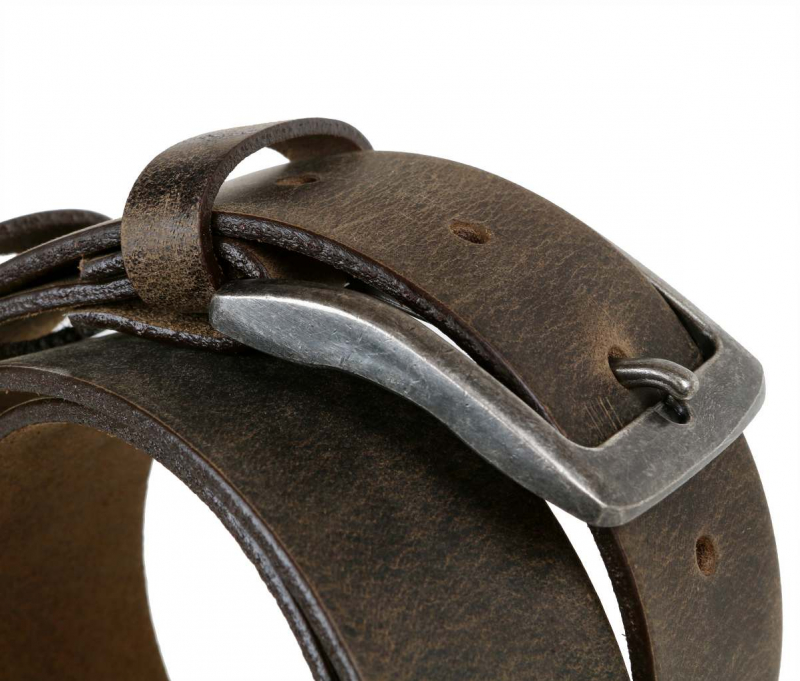Kožený opasok zn. MERCUCIO - remeň z masívnej poddajnej kože v brúsenej rustikálnej úprave bez okrajového prešívania. Skracovateľný na požadovanú dĺžku. Satinovaná zmatnená pracka na strmeň z masívneho kovu, prevedenie šedostrieborné tmavé. Vhodný do džínsov aj nohavíc.
