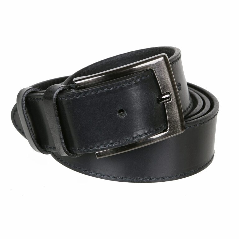 Kožený opasok zn. MERCUCIO - s luxusne spracovanou prackou a čiernym koženým remeňom v matnom prevedení.