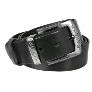 Kvalitný kožený opasok s masívnou gravírovanou prackou na strmeň a s kovovým putkom s gravírovaním. Remeň s hrúbkou 3 mm v hladkej luxusnej úprave, zmatnený. Zmäkkčený a extra flexibilný materiál pre komfortné a príjemné nosenie - nosením sa pružne prispôsobuje telesným tvarom a netlačí pri pohybe.