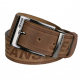 Štýlový kožený opasok zn. MERCUCIO - remeň z masívnej poddajnej kože v brúsenej hnedej úprave s okrajovým prešívaním. Skracovateľný na požadovanú dĺžku. Atraktívna masívnejšia pracka na strmeň, prevedenie šedostrieborné satinované s eleganným hĺbkovým gravírovaním. Vhodný do džínsov aj nohavíc.
