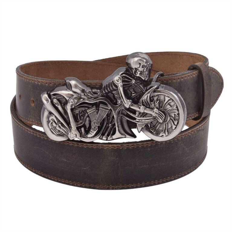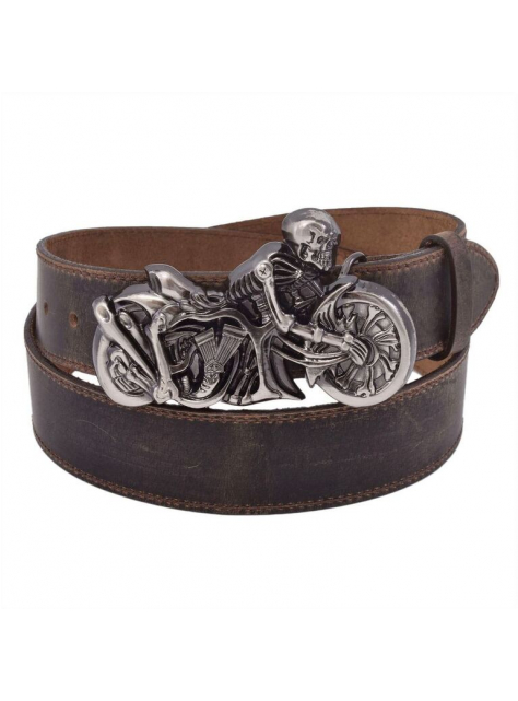 Kožený opasok zn. MERCUCIO - remeň z masívnej poddajnej kože v brúsenej rustikálnej úprave s okrajovvým prešívaním. Satinovaná masívnejšia pracka s uzatváraním kolíkom, prevedenie šedostrieborné tmavé. Vhodný do džínsov aj nohavíc.