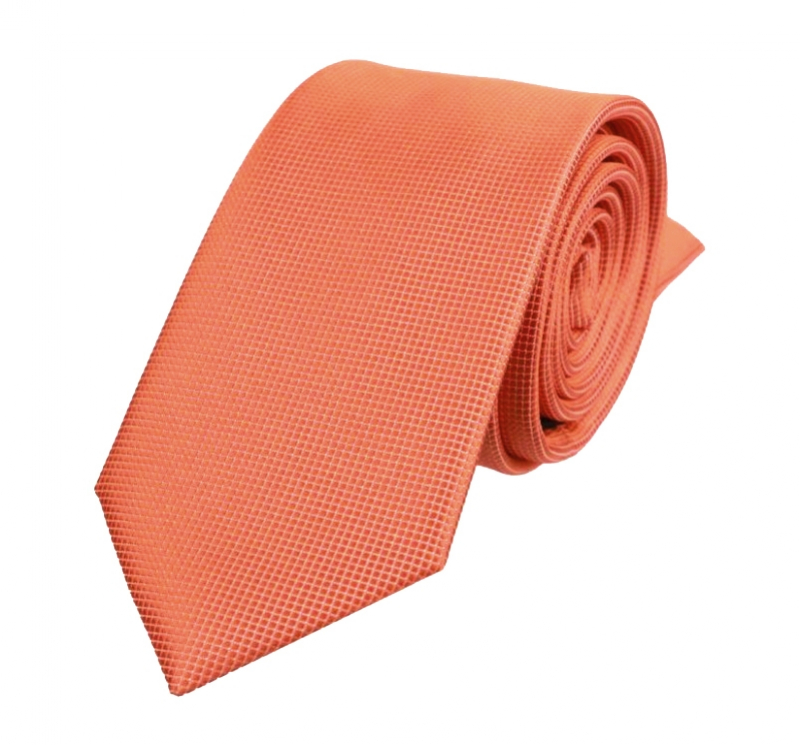Oranžová slim kravata s drobnými štvorčekmi 6 cm