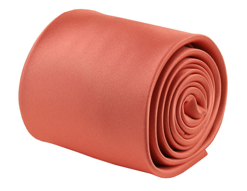 Pánska jednofarebná hladká kravata v sýtejšom oranžovom odtieni - satén nového typu s matnejším povrchom, odolnejší voči záderom, zachováva si však elegantný zamatový odlesk.