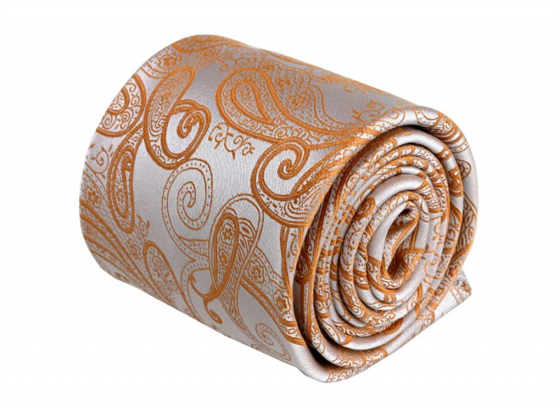 Oranžovo-strieborná kašmírová V.I.P. hodvábna kravata