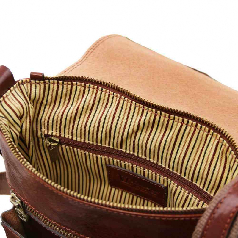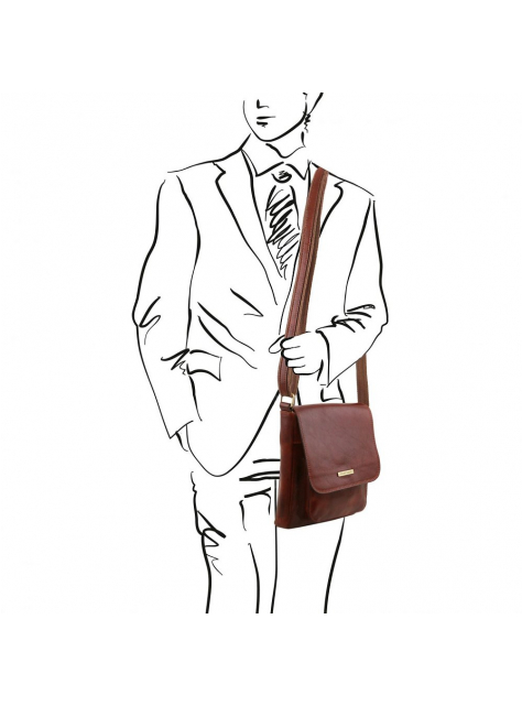 Pánska kožená crossbody taška TUSCANY LEATHER s chlopňou. Zapínanie na magnetickú klapku, vnútorné priečinky na zips. Ramenný popruh s nastaviteľnou dĺžkou.