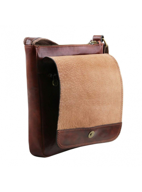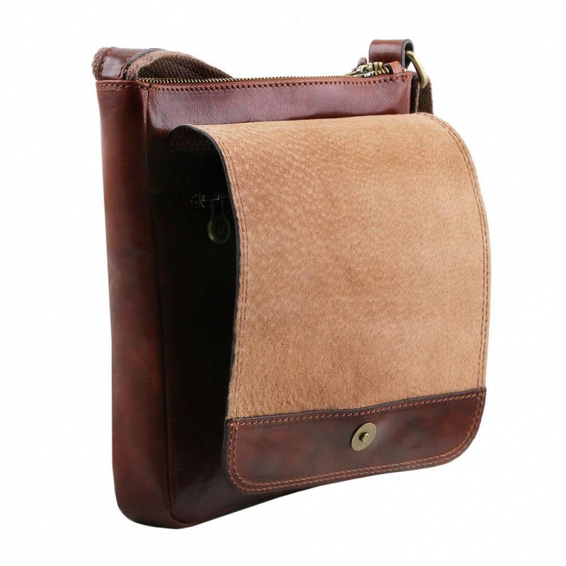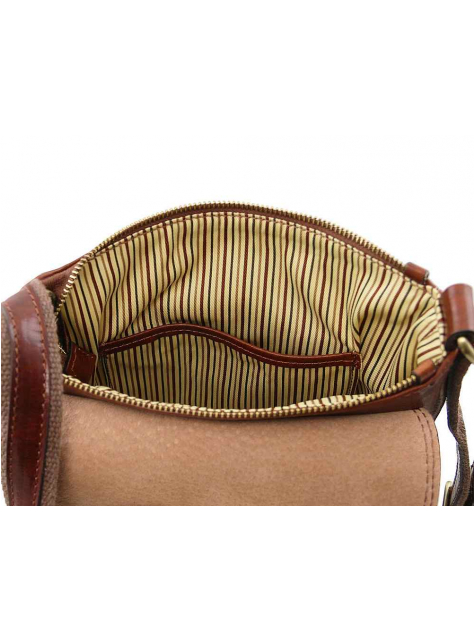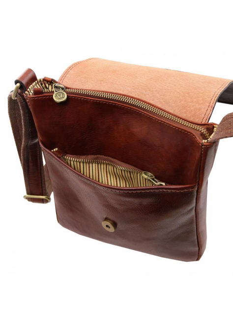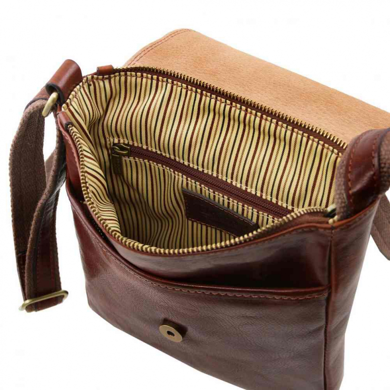 Pánska kožená crossbody taška TUSCANY LEATHER s chlopňou. Zapínanie na magnetickú klapku, vnútorné priečinky na zips. Ramený popruh s nastaviteľnou dĺžkou.