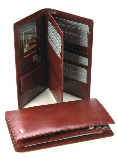 Kožená pánska náprsná taška - dokladovka. Formát pre väčšie množstvo osobných dokladov, kariet a pod. Vhodná do vnútorného vrecka saka, do príručnej tašky. Balenie: krabička