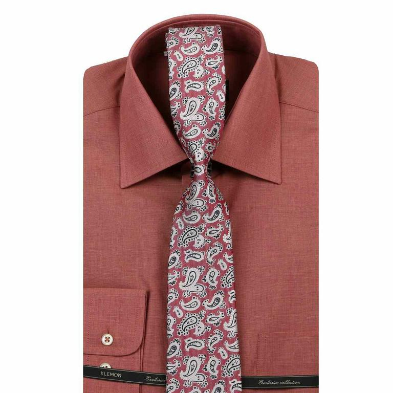 Pánska košeľa KLEMON dlhý rukáv tehlová