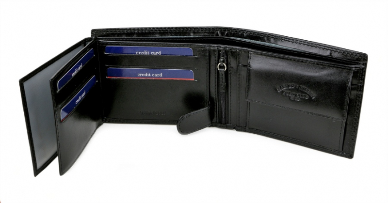 Pánska peňaženka z vysokokvalitnej kože v masívnom prevedení - hladká štruktúra povrchu.