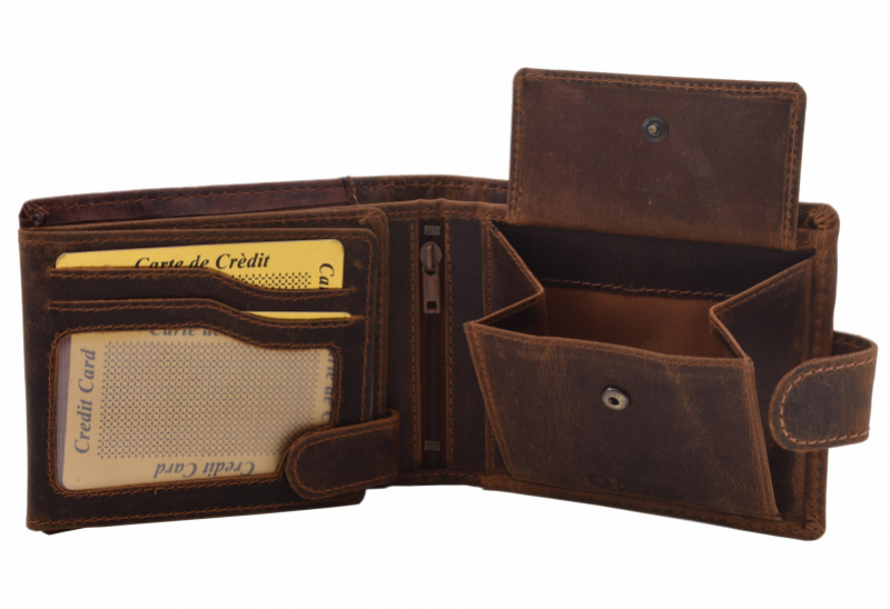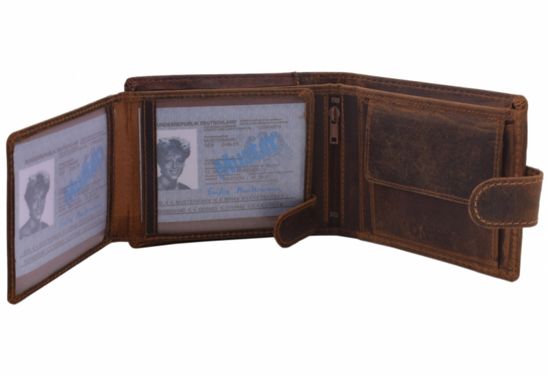 Pánska peňaženka MERCUCIO s prackou. Pravá koža vo vintage úprave so zamatovo-hladkým povrchom, tmavo-hnedá sandal.