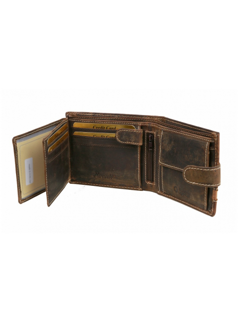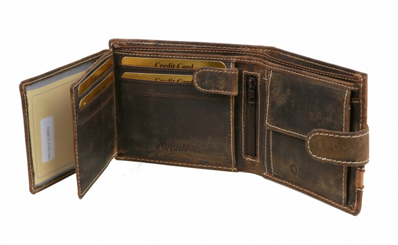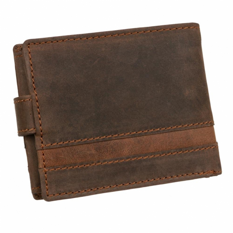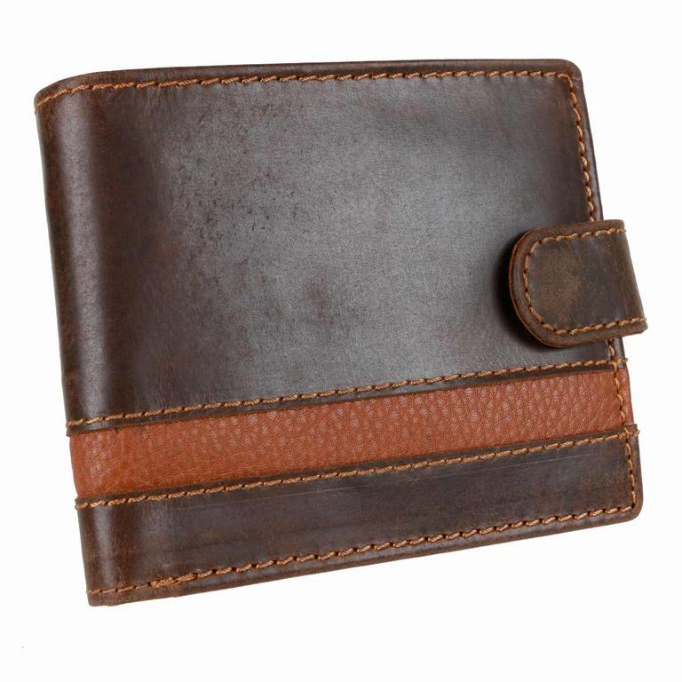 Ponúkame pánsku peňaženku z brúsenej kože rustikálnej úpravy so starožitnou patinou. Hnedá peňaženka so zapínaním na pracku, klasický formát na šírku.