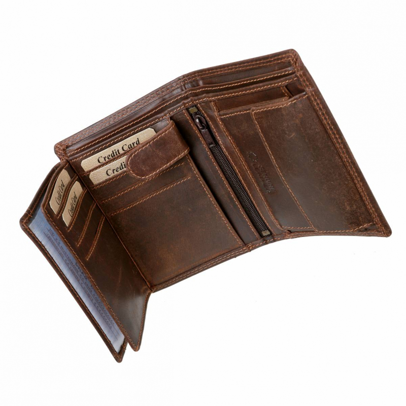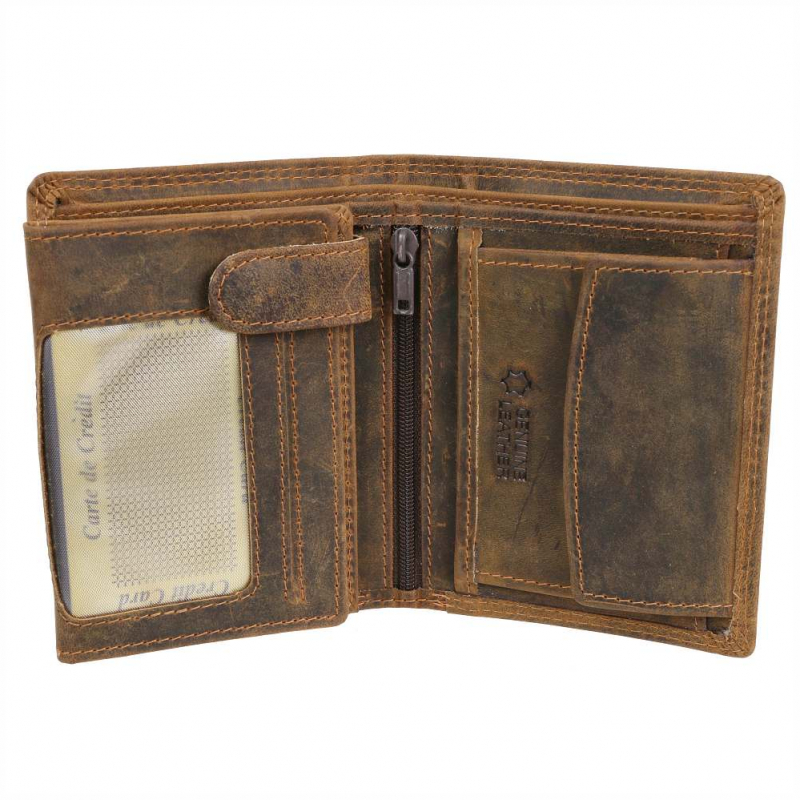 Pánska peňaženka väčšieho typu - vyrobená z kvalitnej pevnej kože, spracovanie s patinou starožitného vzhľadu. Koža v matnej úprave povrchu.