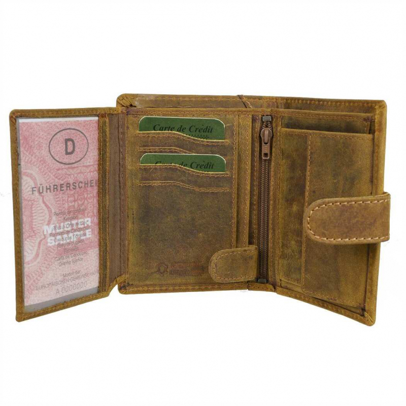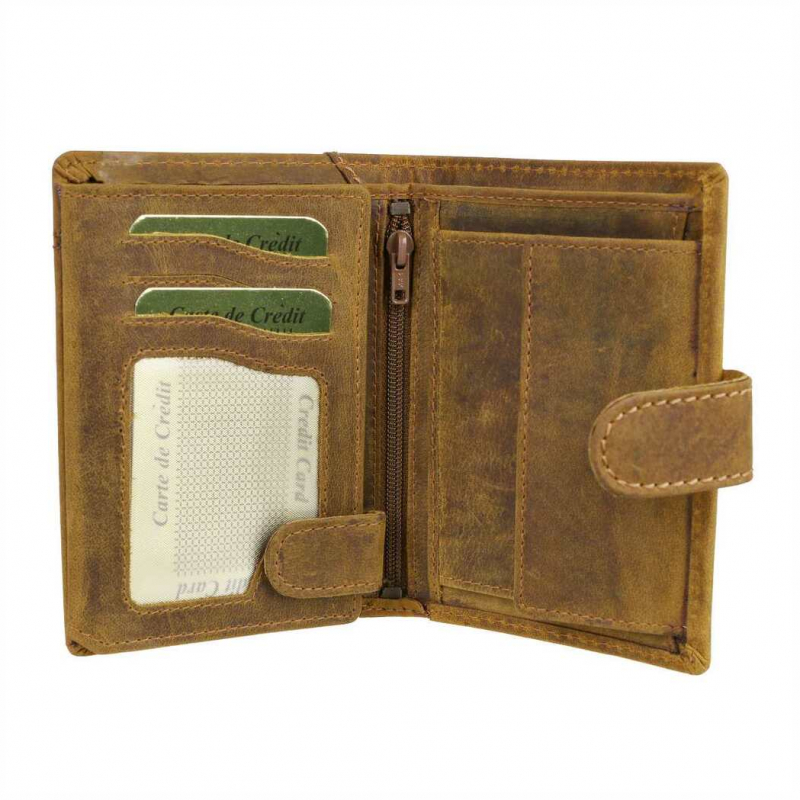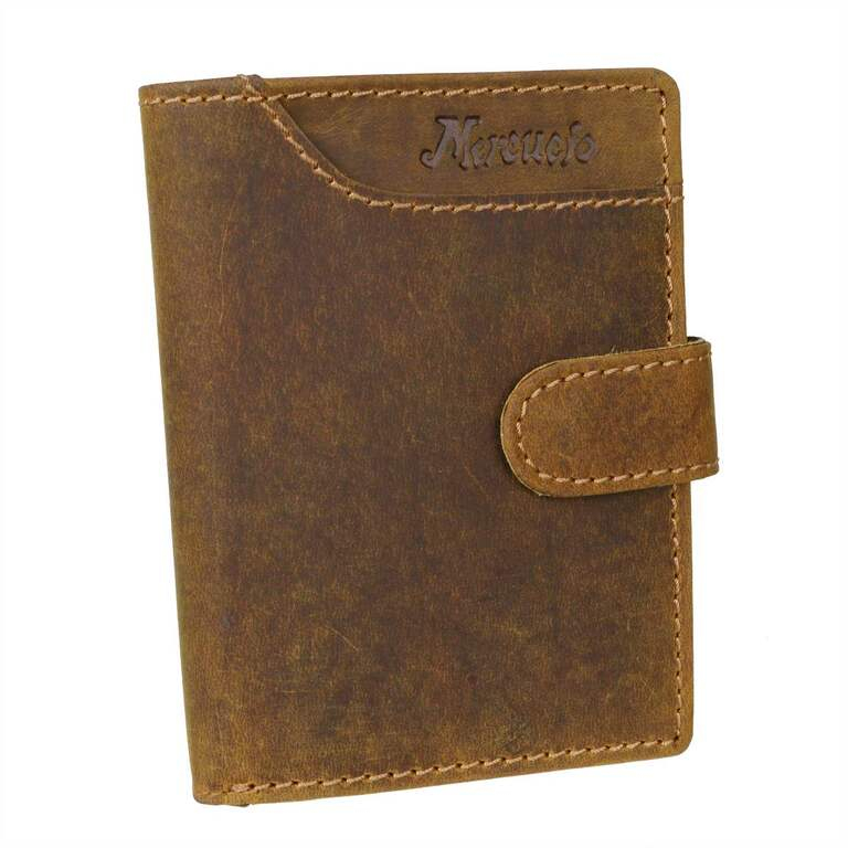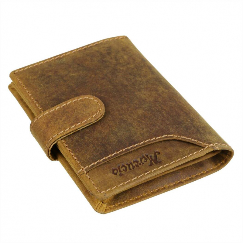 Pánska peňaženka MERCUCIO s prackou. Brúsená koža vo vintage úprave so zamatovo-hladkým povrchom, farba sandal tmavo-hnedá.