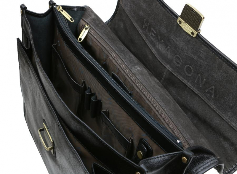 Pánska luxusná aktovka francúzskej značky HEXAGONA z kvalitnej robusnej kože. Vnútro 2-komorové, prispôsobená dlhotrvajúcemu úžitku, odolná voči záťaži.