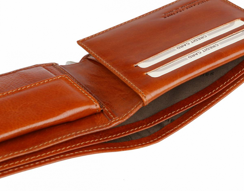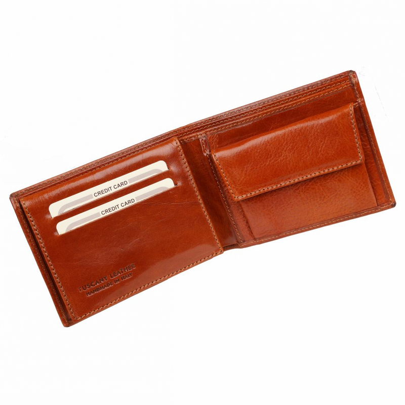 Ponúkame Vám exkluzívnu pánsku koženú peňaženku z krásnej voňavej kože TUSCANY LEATHER koňakovo-medovej farbe.