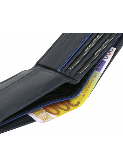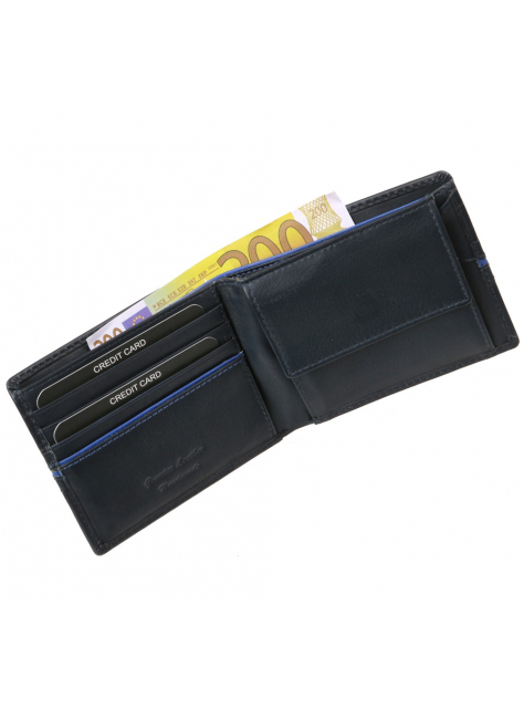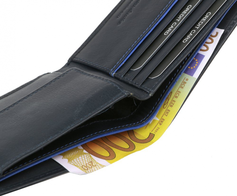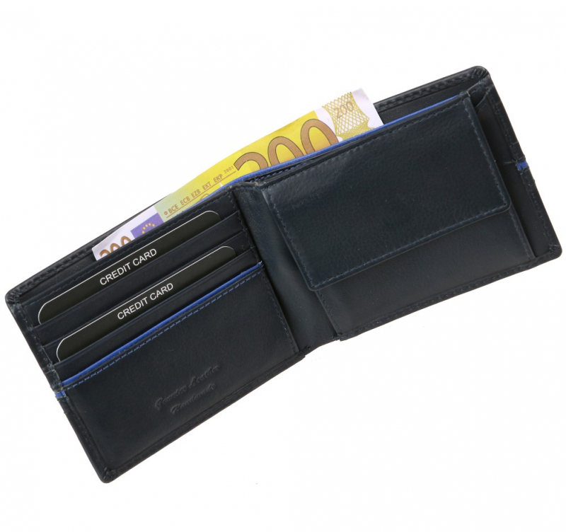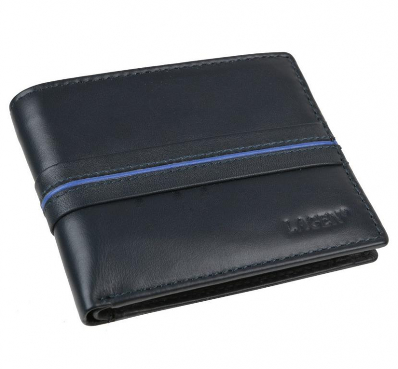 Pánska peňaženka LAGEN v štýlovom prevedení - tmavomodrá so vsadeným modrým koženým pásikom. Kvalitne spracovaná peňaženka z mäkkej kože.