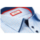 - zapínanie košele na gombíky, šitie gombíkov červenou niťou, gombíková léga s podšitím, náprsné vrecko.
