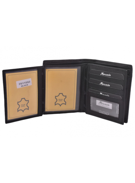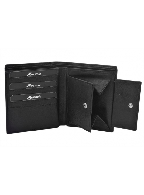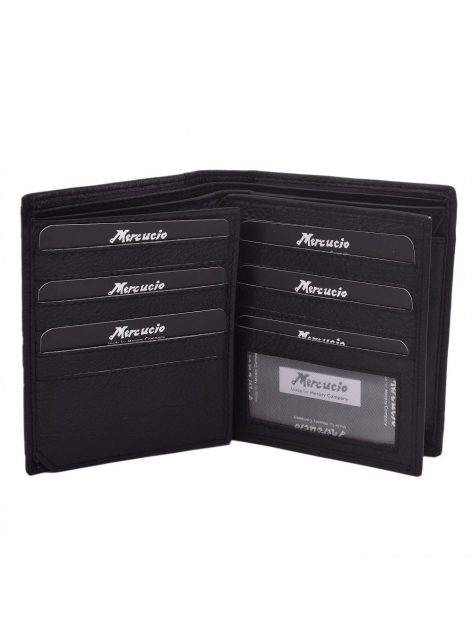 Pánska peňaženka MERCUCIO vo vysokom formáte bez zapínania s vnútornou skladacou časťou. Kvalitná nappa koža, čiernej farby.