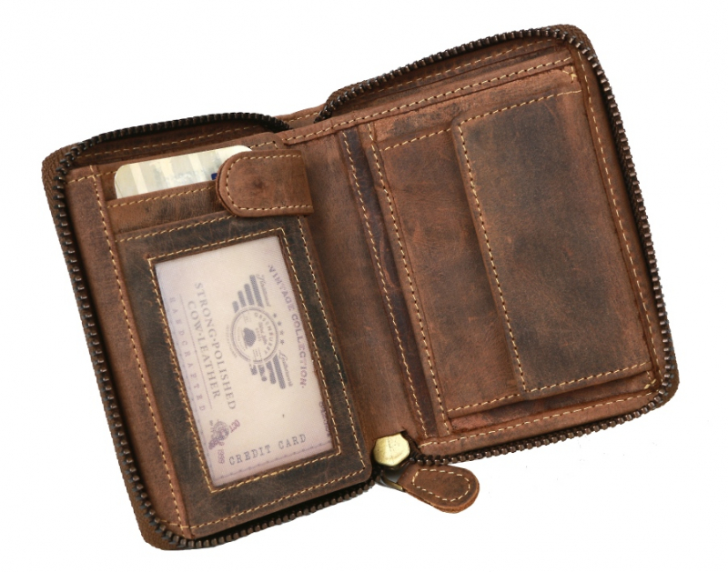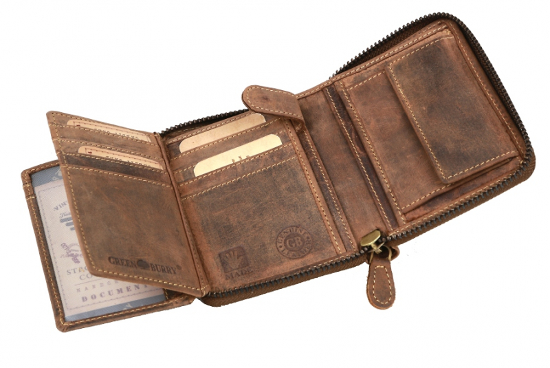 Pánska peňaženka GreenBurry z jemne brúsenej kože, starožitný vzhľad, masívna hrubá koža v odľahčenom spracovaní.