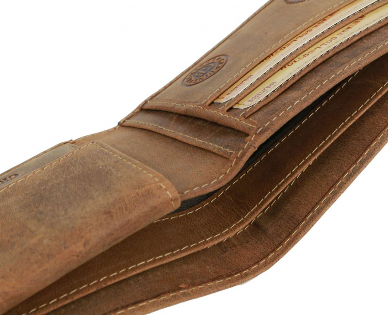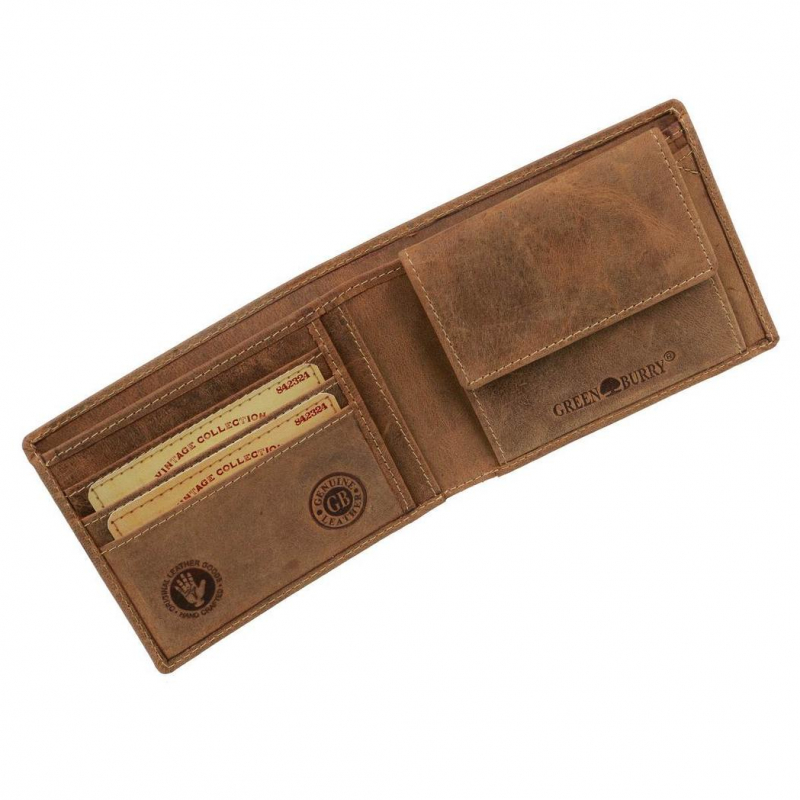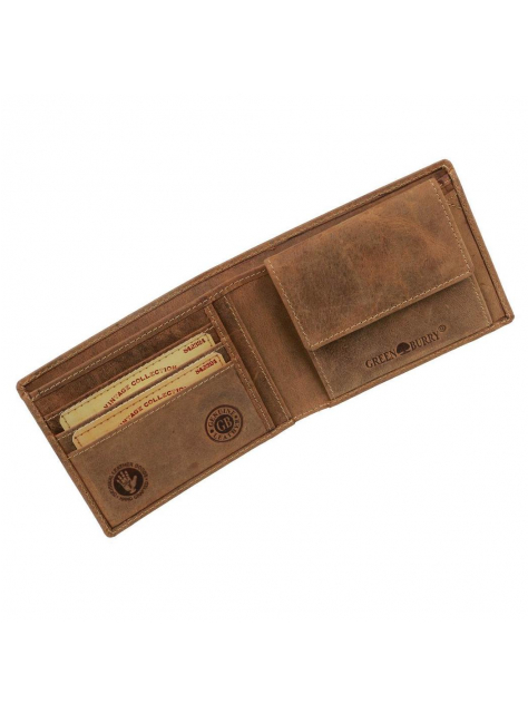 Pánska peňaženka GreenBurry z jemne brúsenej kože bez zapínanía, starožitný vzhľad, masívna hrubá koža v odľahčenom spracovaní.