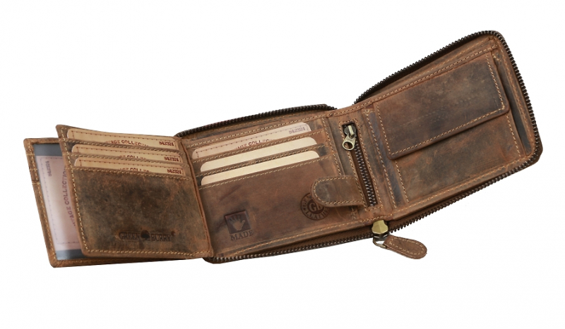 Pánska peňaženka GreenBurry z jemne brúsenej tmavej kože, starožitný vzhľad, masívna hrubá koža v odľahčenom spracovaní.