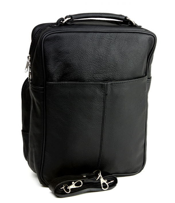 Pánska kožená pracovná taška vo formáte na výšku - s koženou rukoväťou a ramenným popruhom (dĺžka do 120 cm) - taška pre každodenné bežné nosenie potrebných osobných vecí.