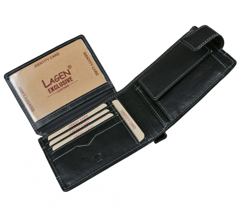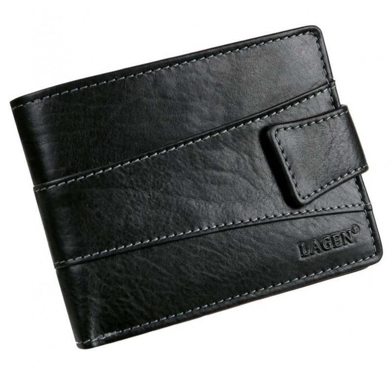 Kvalitná pánska peňaženka LAGEN s vonkajším zapínaním. Opatrená RFID ochranou kariet.