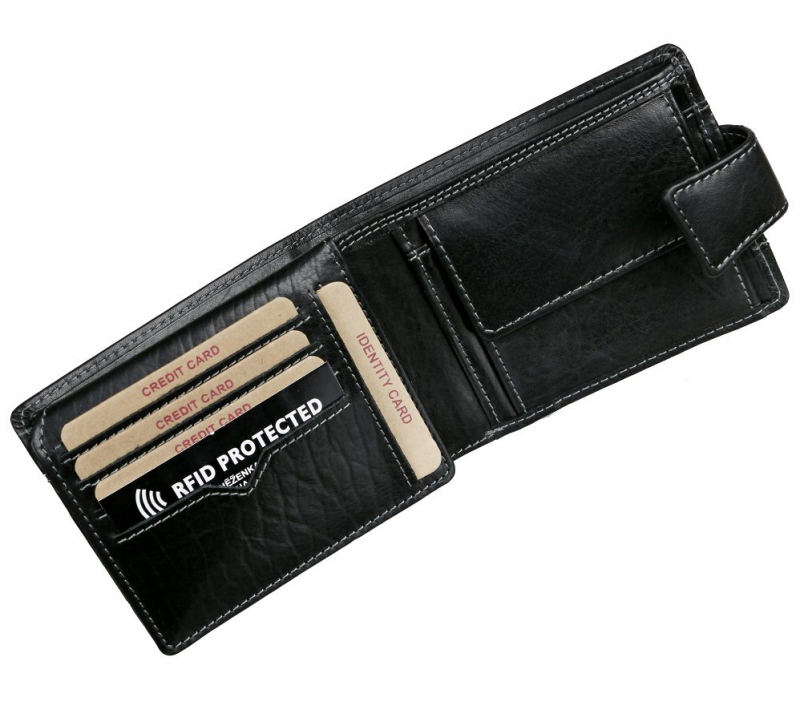 Pánska RFID peňaženka s prackou, na šírku čierna