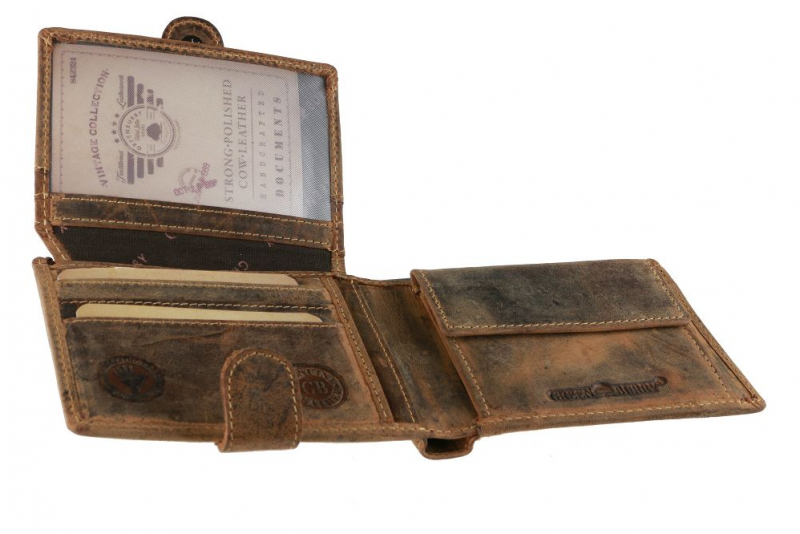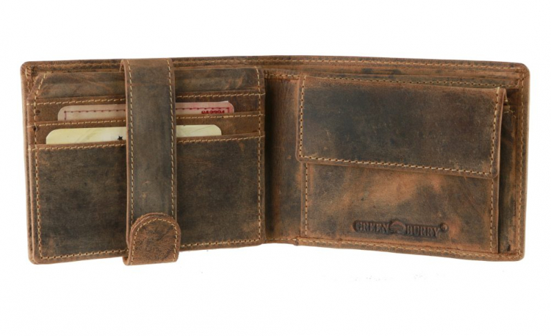 Pánska kožená peňaženka GREENBURRY Vintage Vyrobená z jemne brúsenej kože, starožitný vzhľad, masívna hrubá koža v odľahčenom spracovaní.