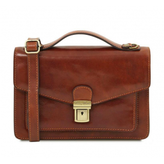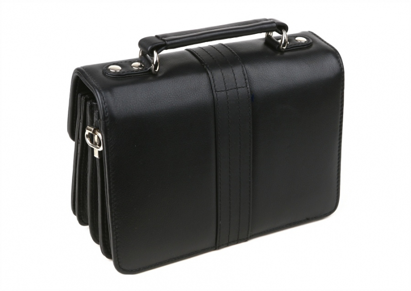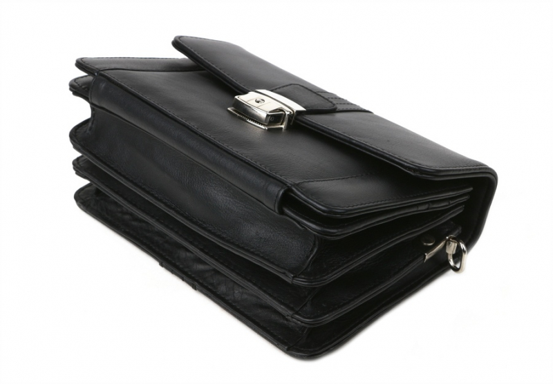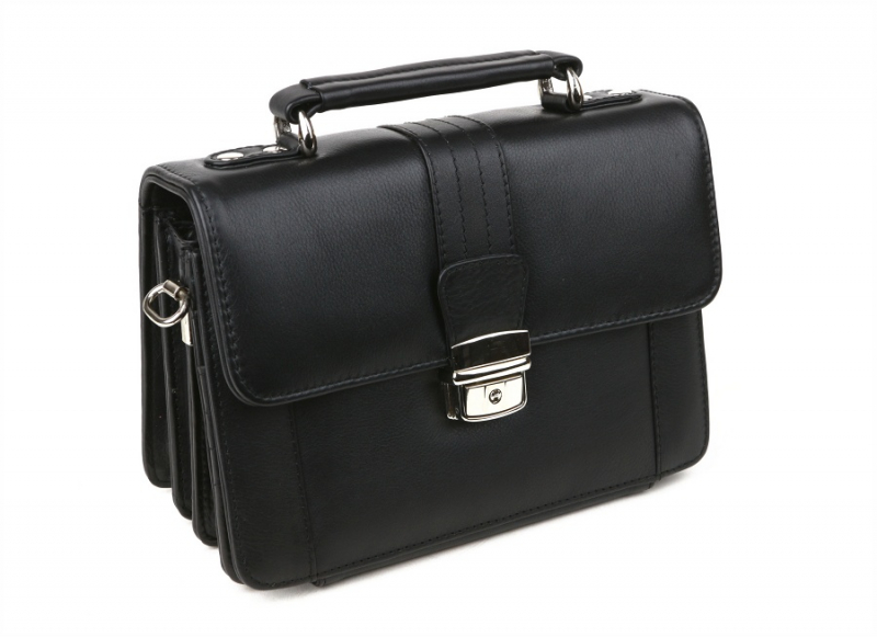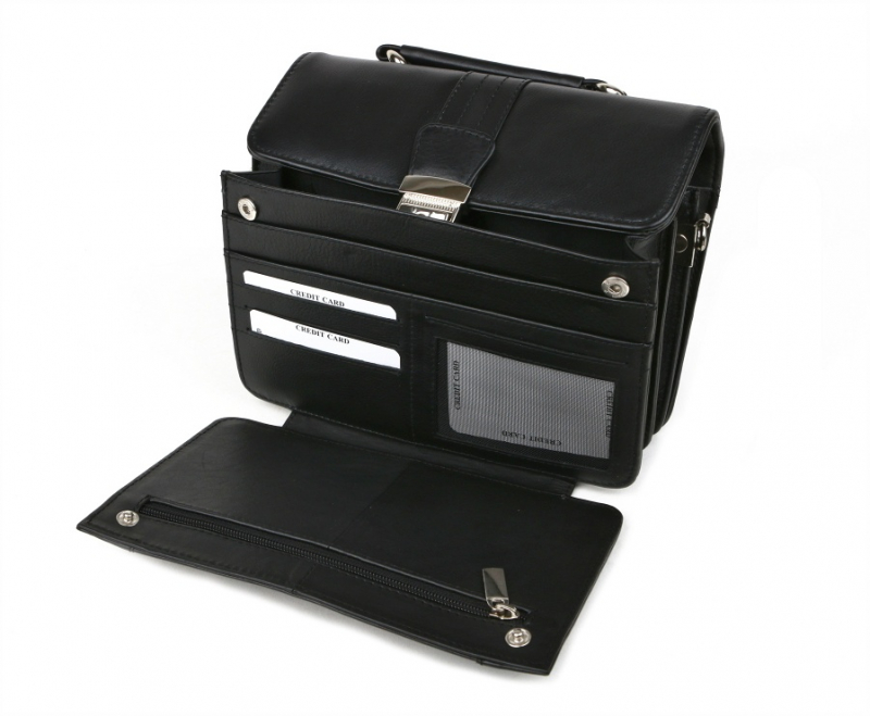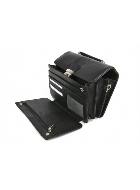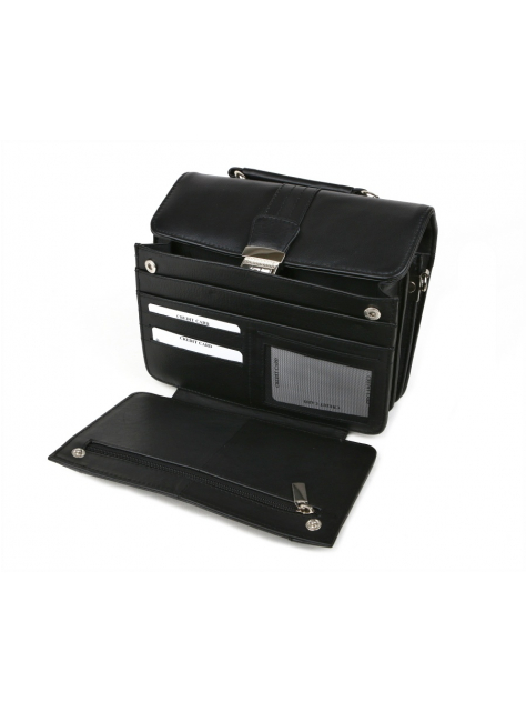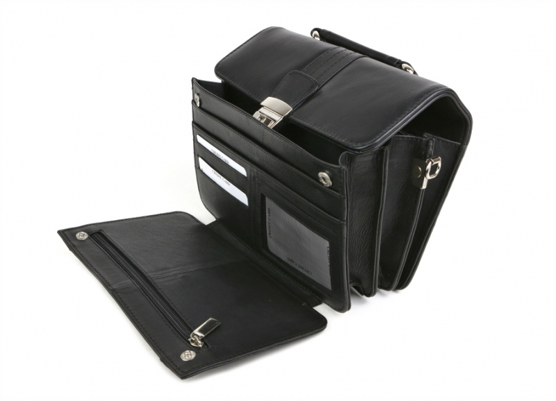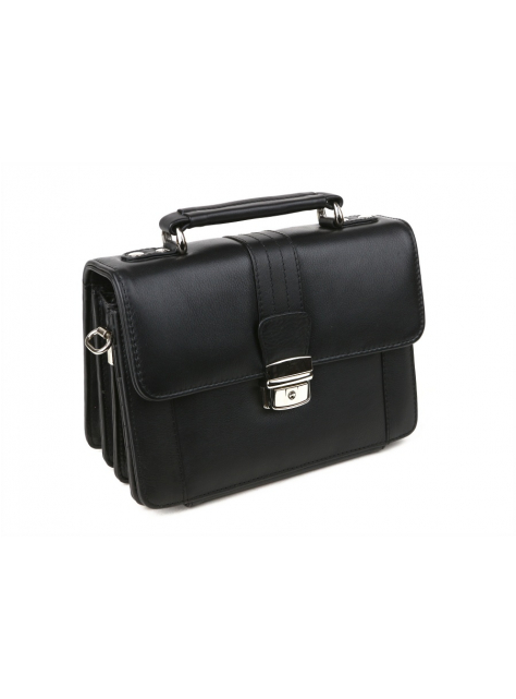 Pánska kožená taška na doklady s hornou rúčkou, bočnným remienkom a dlhým remienkom pre nosenie na ramene - väčší typ s 3 vnútornými oddeleniami a predným odopínacím organizérom. Vyrobená s hladkej kože s luxusným dizajnom.