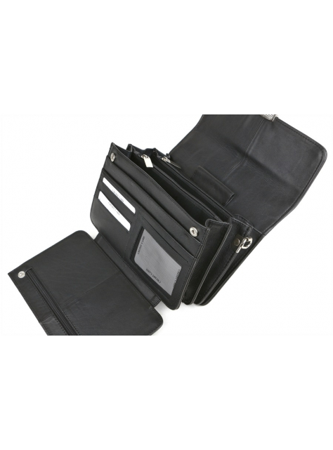 - 3 otvorené vnútorné komory, 2 stredové zipsové priečinky, malý zipsový priečinok, odopínateľný krúžok na kľúče, úchyt na pero