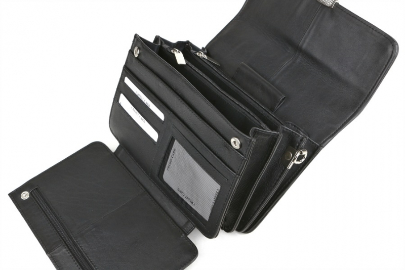 Materiál: pravá koža v čiernom zmatnenom prevedení, hladký povrch, príjemný na dotyk, vnútro - koža, textilná podšívka, kovové časti - zliatina kovu, strieborné leštené