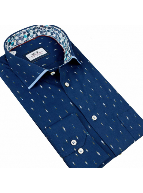 Moderná pánska vzorovaná košeľa s dlhým rukávom BEVA KLASIK. Košeľa v športovo-elegantnom štýle. Vhodná na bežné nosenie, tiež do obleku s kravatou alebo motýlikom.