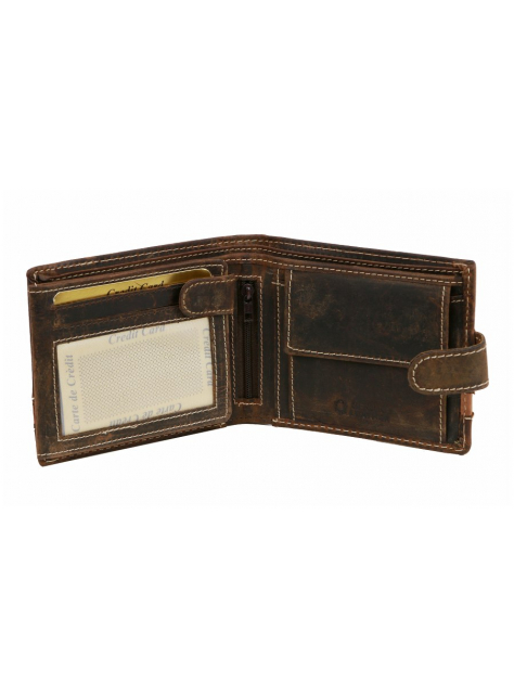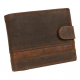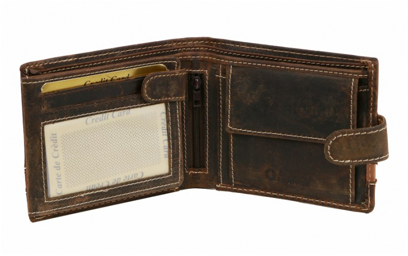 Ponúkame pánsku peňaženku z brúsenej kože rustikálnej úpravy so starožitnou patinou. Hnedá peňaženka so zapínaním na pracku, klasický formát na šírku.